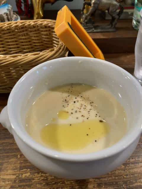 ワンプレートにパスタとリゾットの合わせ盛り。オプションではない。デフォルトのランチメニューなのだ。お店は神保町の賑やかな中心エリアから少し外れた静かなスポットに佇む穴場的な存在となっている。お一人カウンター席。まず供されたのはひよこ豆の冷製スープ。ドロッとポタージュ。なかなか本格な味わい。なんなく飲み干したあとにメインのプレート。パスタとリゾットは共にハーフサイズ。リゾットなんて食する機会がほとんどなかったので得した気分だ。まずはパスタ。いいだこの柔らかい食感とタコ特有の旨味。ラグーソースもなかなか濃厚で丁寧に仕上げられている。ペアのとうもろこしのリゾットはまさにコーンの甘みが際立っていながらチーズの塩っ気もちょうどいい。完食してフォークとスプーンを並べて皿の上に置くとすぐに食後のデザートがでてきた。固めのプリンでキャラメルソースも諄くない。これで1,200円なら十分に満足のランチではなかろうか。午後の仕事に向けてオフィスに戻った。