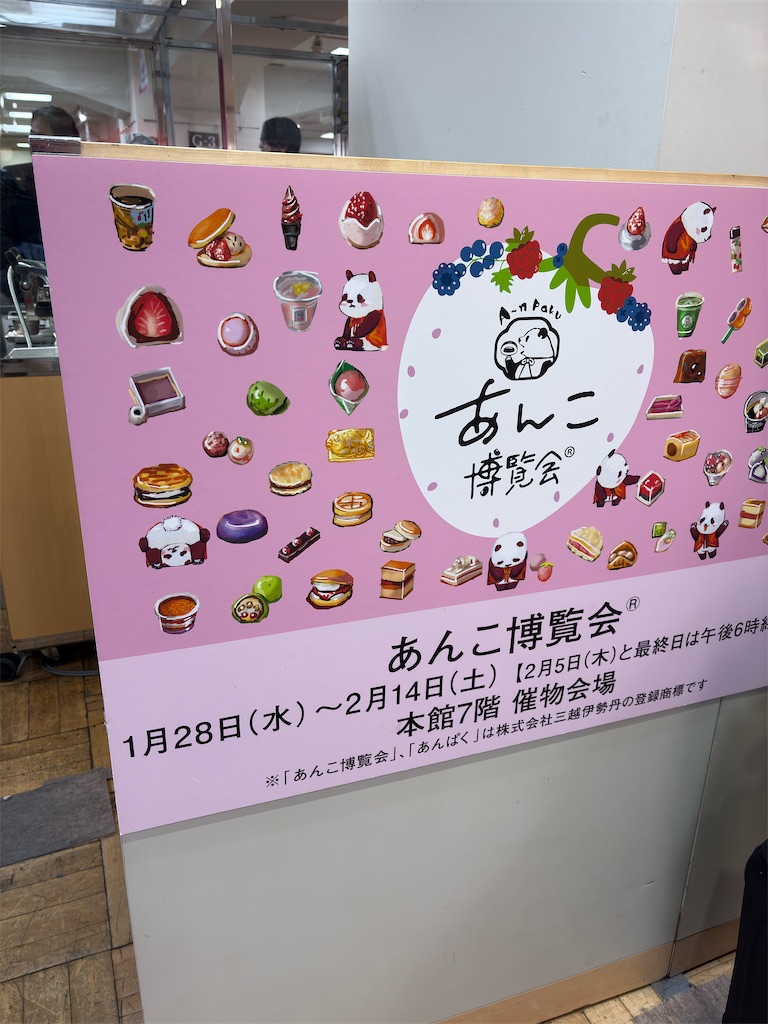 2026-02-10 【ぶらり日記】あんこ博覧会(日本橋三越本店) ぶらり日記 訪問日時:2/8(日)11:25 日本橋三越7F あんこ博覧会〜2/14まで 土曜日のお昼だけあって会場内は大混雑。 出店の中には20人以上の待ち行列があり最後尾だと思って並んでも、実は通路を跨いだ並びの途切れた位置だったといった始末。 『丸岡家』の水羊羹美。 黒糖の甘さが濃厚だけど上品さの極みなので、くどくない。瑞々しさが秀でている逸品! 『茶菓工房たろう』のキューブもなか『窓』。 ピンク色はベリーフレーバー餡。 褐色は加賀棒茶餡。 ベリーフルーツテイストが濃厚!棒茶は控えめで優しい味わい。